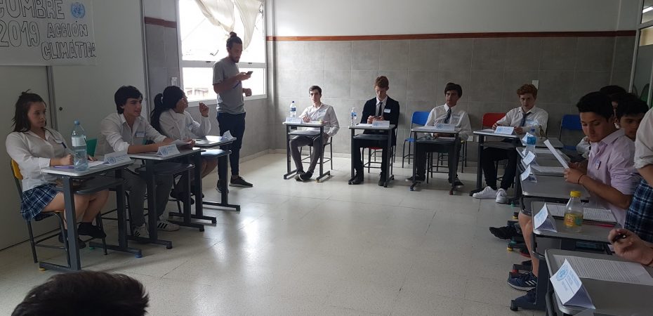 En el día de la fecha en el Colegio Ayres del Cerro se realizó una simulación de la cumbre de acción climática 2019 de la ONU, de la que participaron todos los alumnos de 6to año del secundario, Orientación Naturales.