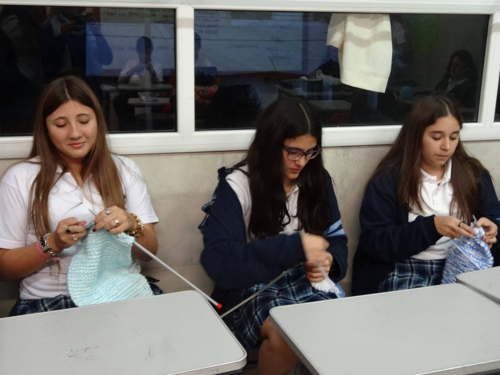 José Ignacio Fabián agregó: “Los alumnos de 3° B tejimos bufandas del color de nuestra bandera para llevarla siempre en nuestro cuello. Esta actividad me gustó porque fue divertida. Además tiene mucho que ver con nuestro país, porque se acercaba el aniversario de la Revolución de Mayo y el comienzo del mundial…Nosotros, los varones, lo hicimos además, para demostrar que también podemos tejer o hacer cosas que culturalmente están asignadas a las mujeres. La experiencia me gustó y la volvería a hacer”