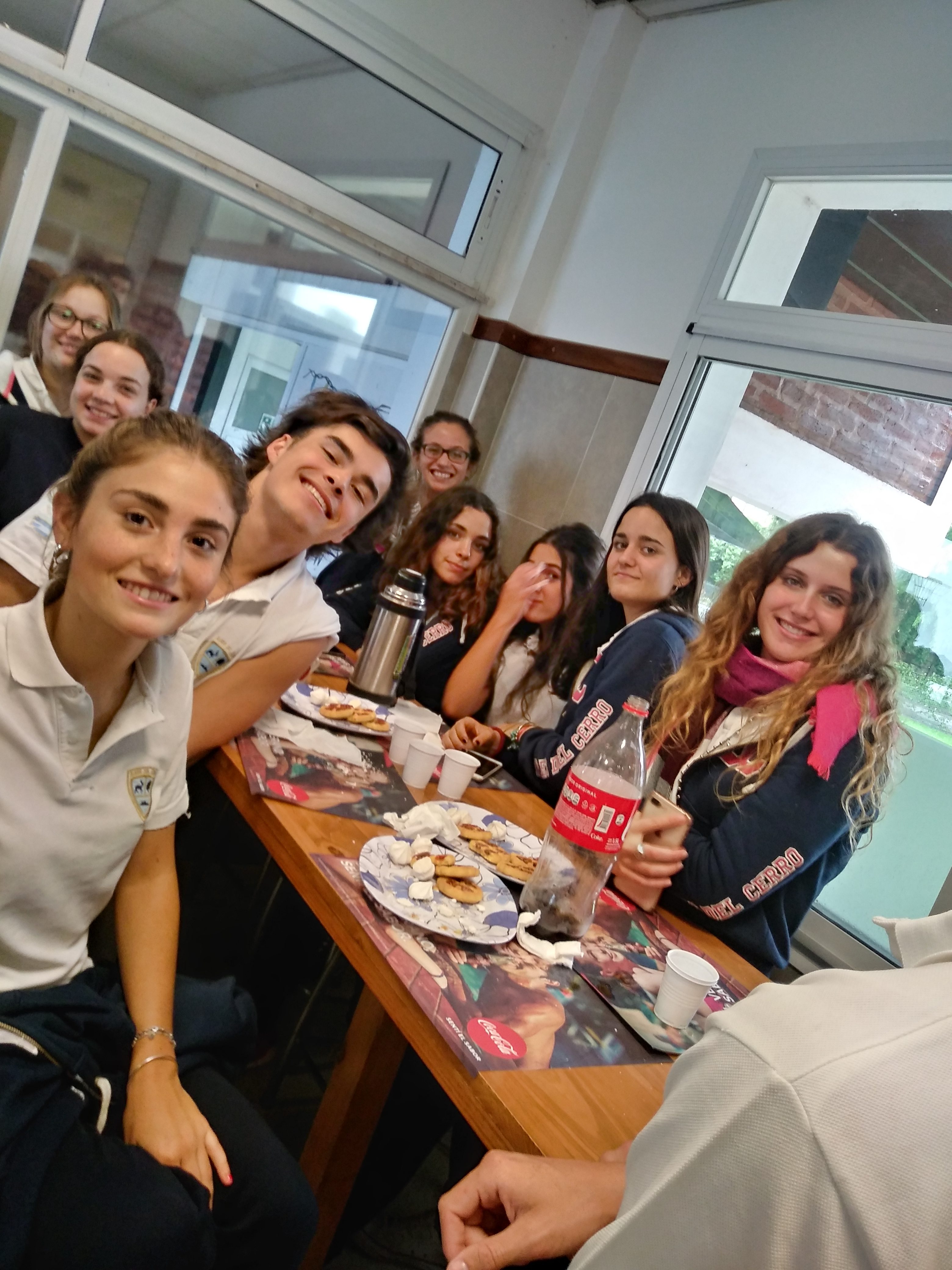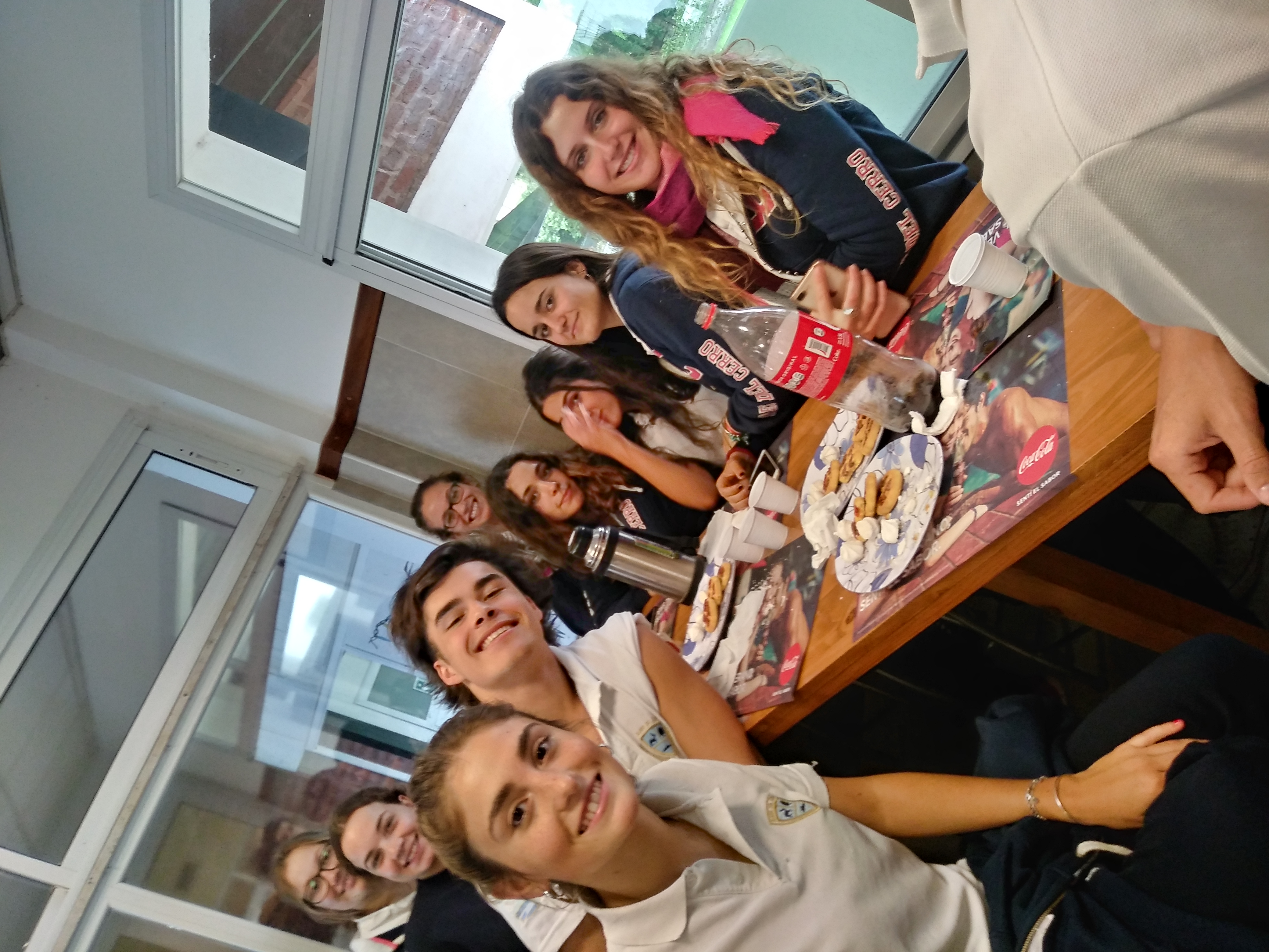 Hoy Bety, la encargada del kiosco de la escuela sorprendió a los chicos del sexto año con un desayuno maravilloso. A las 10:30 horas nos dijeron de bajar al bufete y ahí encontramos dos mesas llenas de galletitas y sándwiches. Nos sentamos todos juntos y disfrutamos de esta sorpresa. Que lindo ambiente para compartir los últimos días del secundario.